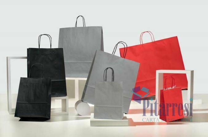 Shoppers in carta kraft bianco, colore rosso, manico ritorta
